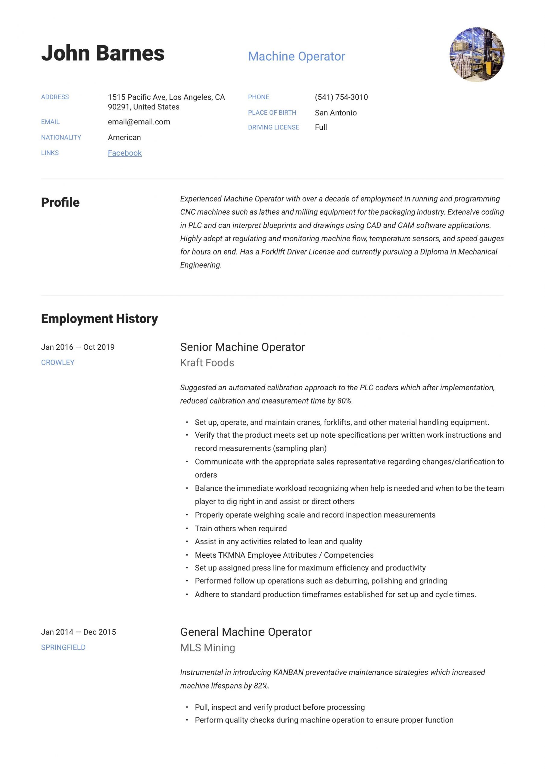 Machine Operator Resume & Writing Guide 12 Templates 2020