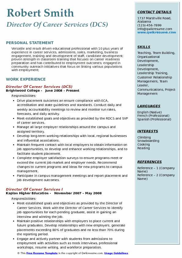 Employers use resumes as the first step in identifying and selecting realizable candidates for jobs and it is important that your resume properly presents your play a part experience and educational qualifications. A well-written resume presents an fabulous image of you to employers. Employers look at hundreds of resumes for the thesame job and end taking place choosing just one. It is important that your resume is properly formatted and provides every relevant suggestion about you. Looking at professionally written director of career services resume sample can help you create your own fabulous resume and provide every the assistance employers need.