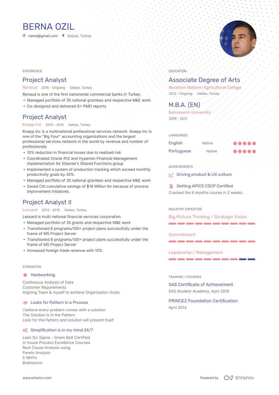 Free Associate Project Manager Resume Sample 2020 by Hiration