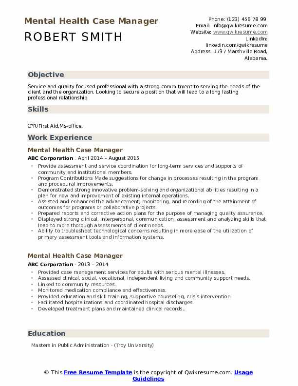 Make Case Manager Mental Health Resume Behavioral Health