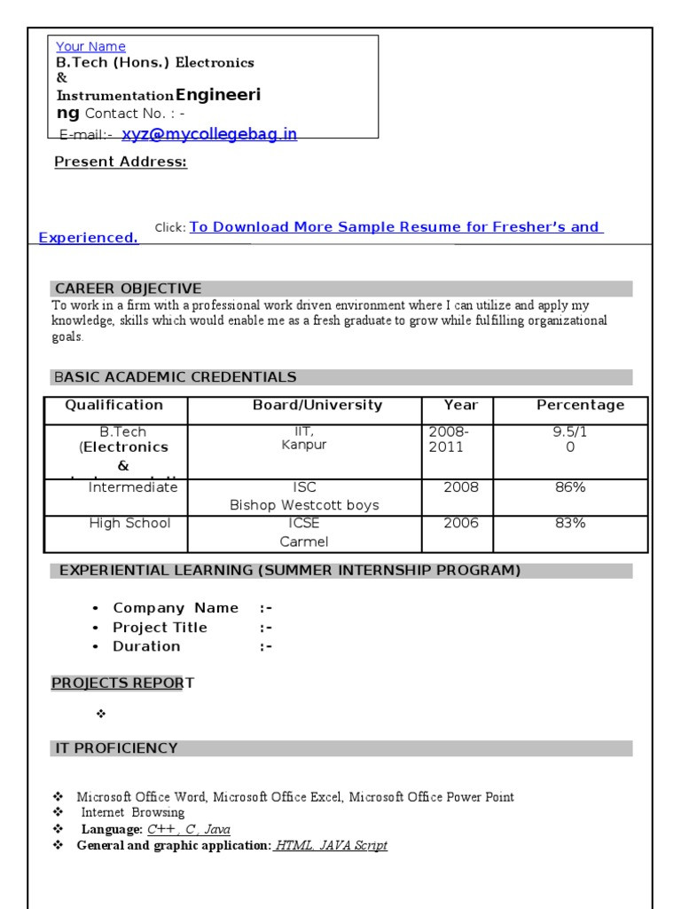 Today most employers select electronic resumes or electronic resumes. Employers generally expect applicants to email their resumes. Electronic scanning is one of the most widely used resume screening methods. Therefore, it is important for your resume to bring out clear keywords. If the scanner finds the precise words it’s looking for, your resume has a better unintentional of inborn selected. To accomplish this, you must clarify your goals, list the skills you craving for each job, regard as being upon a resume format and choose the right keywords. Creating a resume is the first step in getting a job, appropriately an informative resume is essential. resume samples doc download for freshers, you can see as below.