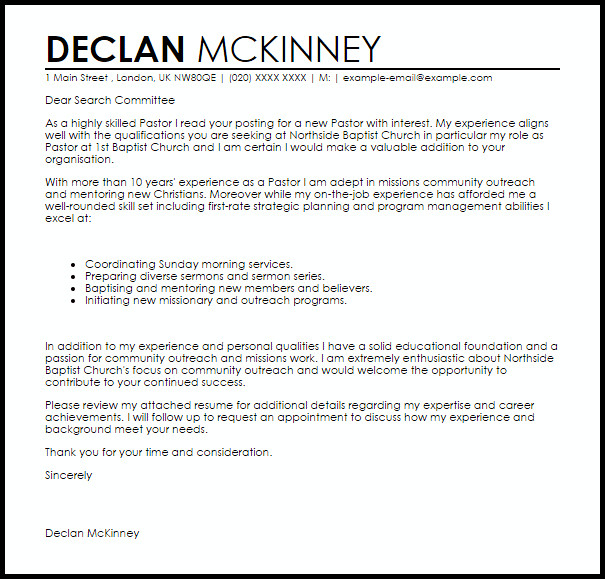 Pastor Cover Letter Sample 200 Cover Letter Samples