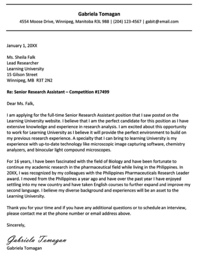 Canadian Cover Letter Format and Template