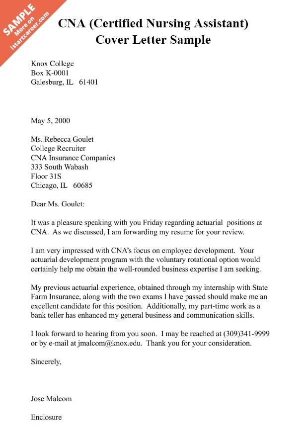 Certified Nursing Assistant CNA Cover Letter