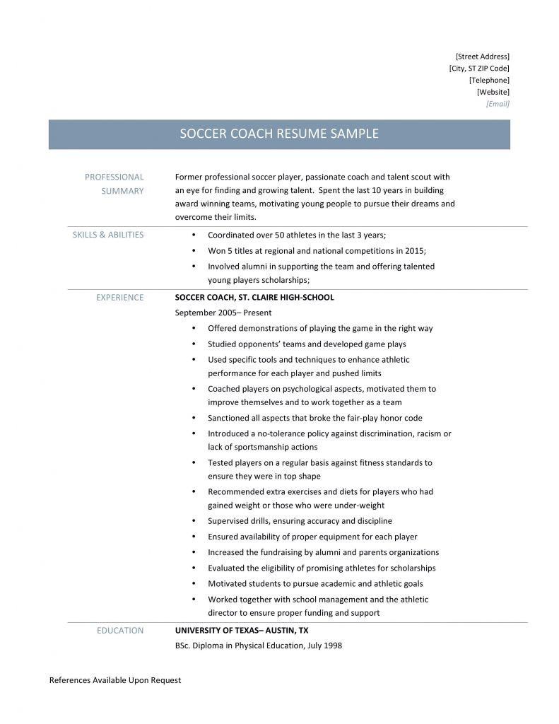 Employers use resumes as the first step in identifying and selecting realizable candidates for jobs and it is important that your resume properly presents your take steps experience and assistant professor qualifications. A well-written resume presents an impressive image of you to employers. Employers see at hundreds of resumes for the same job and end stirring choosing just one. It is important that your resume is properly formatted and provides all relevant assistance not quite you. Looking at professionally written sample resume for a soccer coach can encourage you make your own fabulous resume and pay for all the guidance employers need.