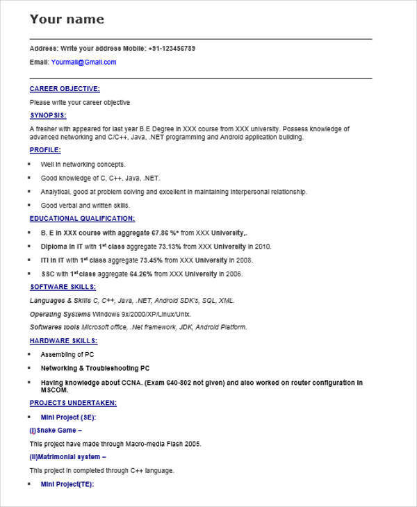 Today most employers prefer electronic resumes or electronic resumes. Employers generally expect applicants to email their resumes. Electronic scanning is one of the most widely used resume screening methods. Therefore, it is important for your resume to put the accent on certain keywords. If the scanner finds the exact words it’s looking for, your resume has a bigger unintended of visceral selected. To achieve this, you must define your goals, list the skills you obsession for each job, find on a resume format and pick the right keywords. Creating a resume is the first step in getting a job, therefore an informative resume is essential. sample resume for android developer fresher, you can look as below.