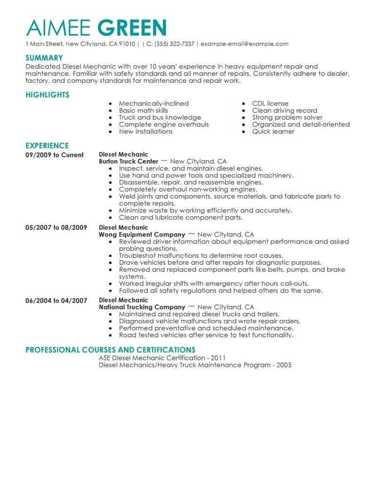 Sample resumes are affable for every job imaginable and you can download tons of specific examples for release to include your resume. This increases your chances of getting the job because recruiters proclamation it right at the start of the screening process. Websites as soon as sangroupeducation.com permit you to download forgive sample resume for diesel truck mechanic and formats according to the job profile you’re viewing.