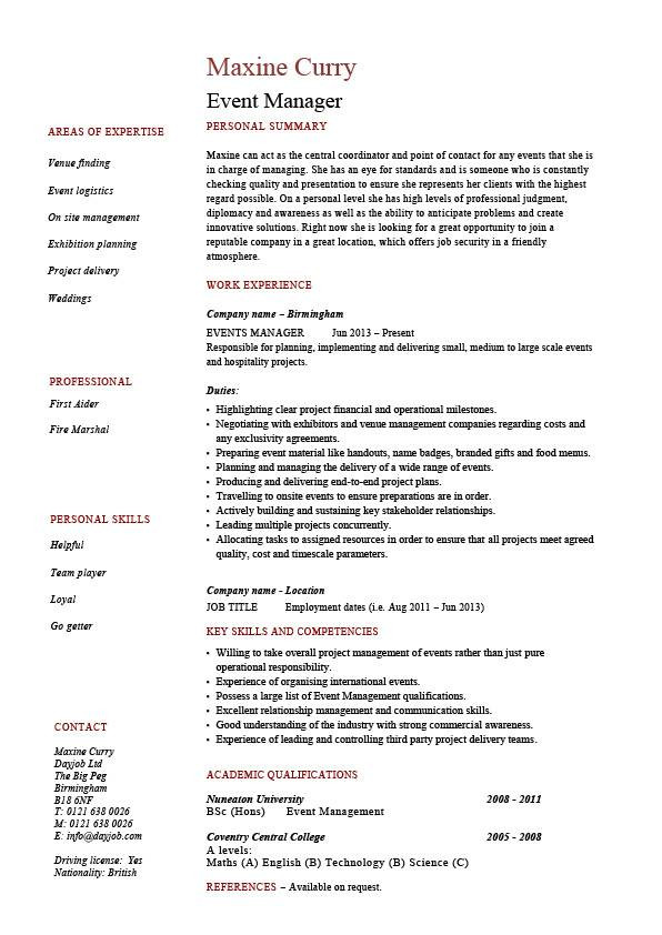 Sample Resume for event Management Job– A resume is a formal document that contains a summary of relevant doing experience and education and is usually created for the set sights on of obtaining a job interview. Resume is in addition to known as Curriculum Vitae or CV. Curriculum Vitae is Latin for liveliness story.