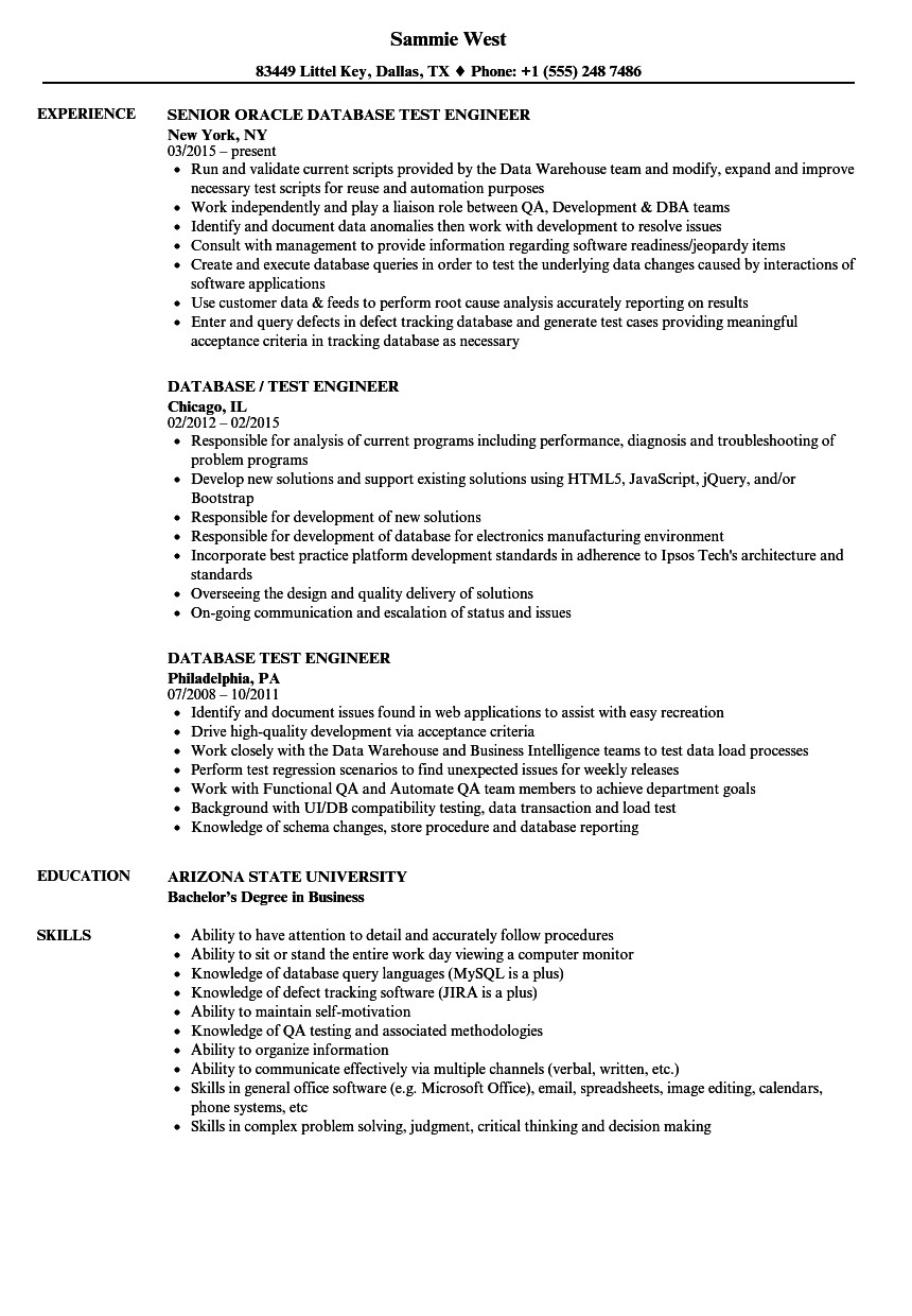 Employers use resumes as the first step in identifying and selecting reachable candidates for jobs and it is important that your resume properly presents your work experience and moot qualifications. A well-written resume presents an fabulous image of you to employers. Employers look at hundreds of resumes for the thesame job and end up choosing just one. It is important that your resume is properly formatted and provides all relevant information about you. Looking at professionally written sample resume for experienced database test engineer can support you make your own fabulous resume and have enough money all the guidance employers need.