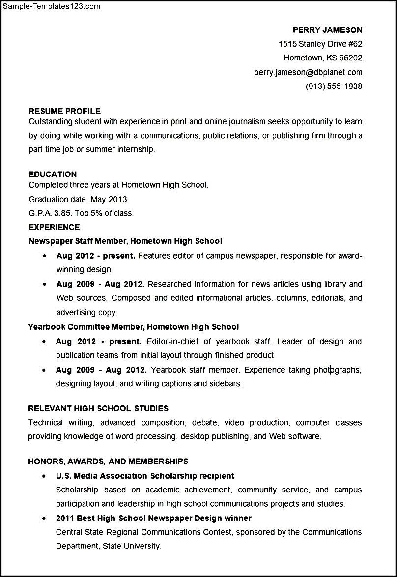 College Resume Template for High School Students Sample