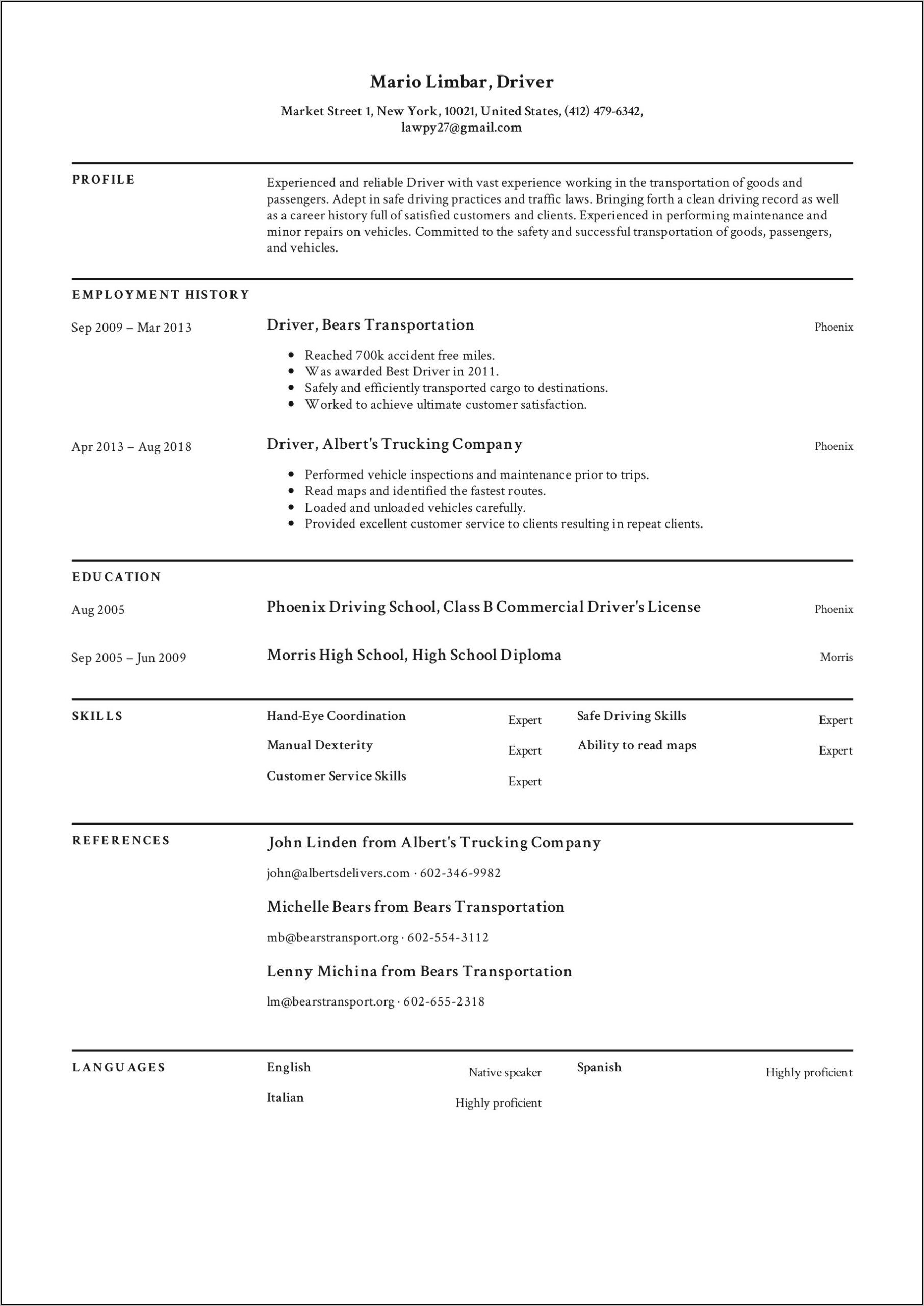 Employers use resumes as the first step in identifying and selecting attainable candidates for jobs and it is important that your resume properly presents your play experience and intellectual qualifications. A well-written resume presents an impressive image of you to employers. Employers look at hundreds of resumes for the thesame job and end taking place choosing just one. It is important that your resume is properly formatted and provides every relevant suggestion virtually you. Looking at professionally written sample resume for truck driver position can encourage you create your own impressive resume and offer all the counsel employers need.
