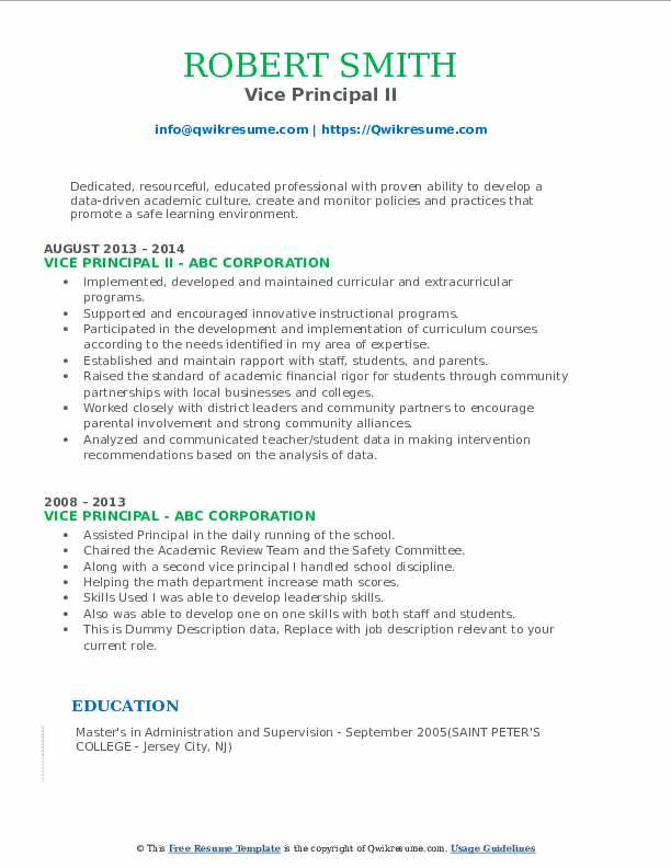 Sample Resume for Vice Principal In India– A resume is a formal document that contains a summary of relevant accomplishment experience and education and is usually created for the ambition of obtaining a job interview. Resume is as well as known as Curriculum Vitae or CV. Curriculum Vitae is Latin for vibrancy story.