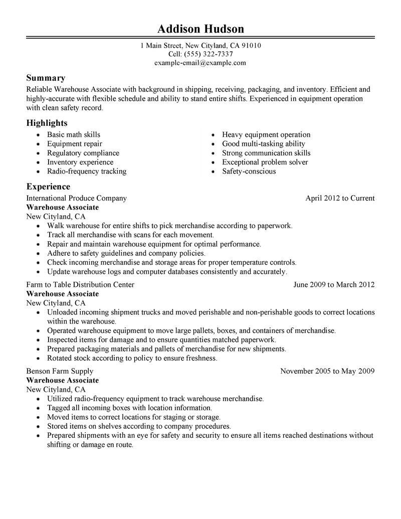 20 Best Ideas Warehouse Supervisor Resume Check more at http …