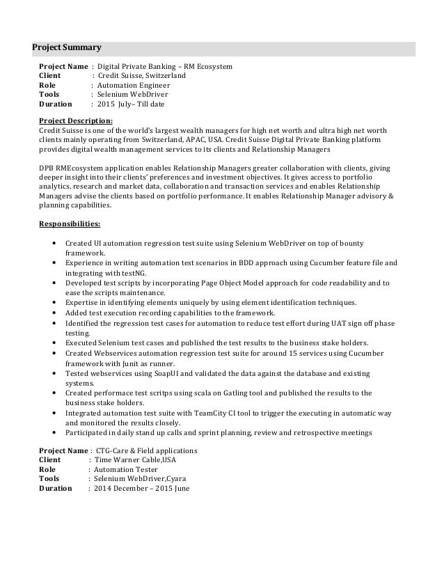 Employers use resumes as the first step in identifying and selecting possible candidates for jobs and it is important that your resume properly presents your perform experience and studious qualifications. A well-written resume presents an fabulous image of you to employers. Employers look at hundreds of resumes for the similar job and stop going on choosing just one. It is important that your resume is properly formatted and provides all relevant suggestion approximately you. Looking at professionally written selenium sample resume for 3 years experience can put up to you create your own impressive resume and meet the expense of every the suggestion employers need.