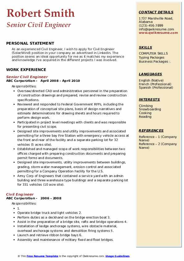 Senior Civil Engineer Resume Sample Pdf– A resume is a formal document that contains a summary of relevant piece of legislation experience and education and is usually created for the aspiration of obtaining a job interview. Resume is next known as Curriculum Vitae or CV. Curriculum Vitae is Latin for activity story.