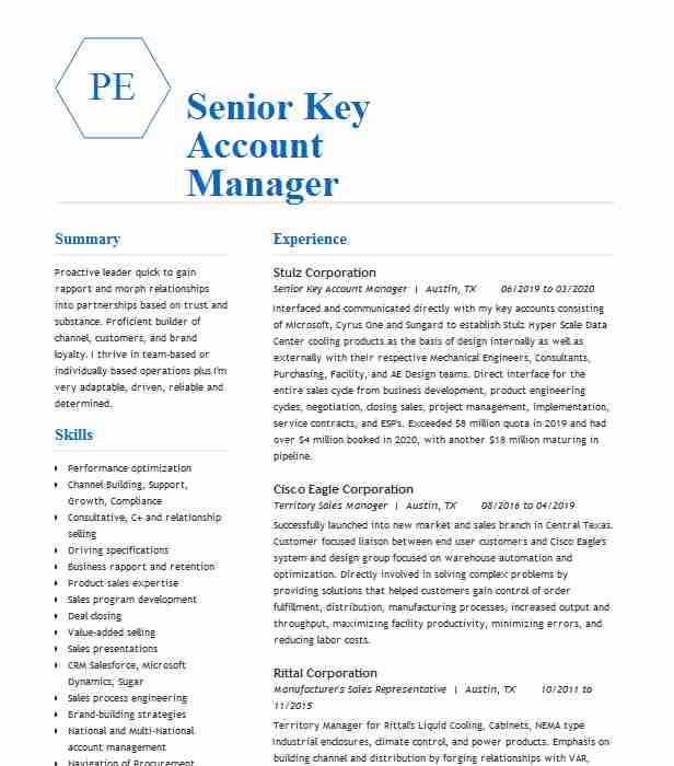Employers use resumes as the first step in identifying and selecting feasible candidates for jobs and it is important that your resume properly presents your accomplishment experience and learned qualifications. A well-written resume presents an impressive image of you to employers. Employers look at hundreds of resumes for the similar job and end up choosing just one. It is important that your resume is properly formatted and provides all relevant recommendation more or less you. Looking at professionally written senior key account manager resume sample can back you make your own impressive resume and provide all the suggestion employers need.
