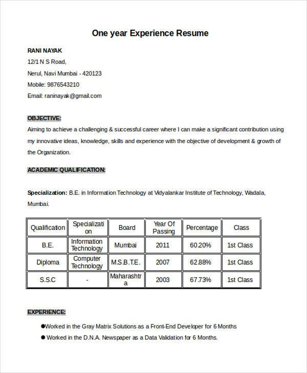 1 Year Experience Resume Sample Pdf 36 Resume format Word Pdf and all other pictures, designs or photos on our website are copyright of their respective owners. we get our pictures from another websites, search engines and other sources to use as an inspiration for you. please contact us if you think we are infringing copyright of your pictures using contact page. we will be very happy to help you.