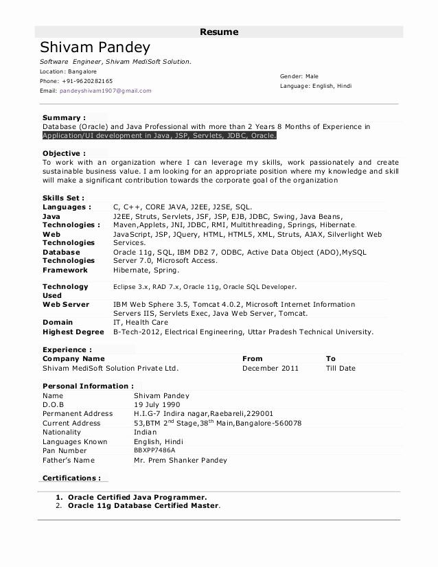 1 Year Java Experience Resume Sample Resume for E Year Experienced software Engineer Most and all other pictures, designs or photos on our website are copyright of their respective owners. we get our pictures from another websites, search engines and other sources to use as an inspiration for you. please contact us if you think we are infringing copyright of your pictures using contact page. we will be very happy to help you.