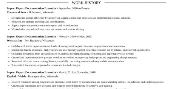 Import Export Documentation Executive Resume Sample - A resume is a formal document that contains a summary of relevant comport yourself experience and education and is usually created for the in...