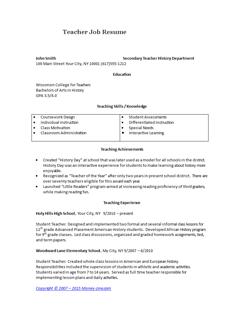 A Sample Resume for Teaching Job Teacher Job Resume and all other pictures, designs or photos on our website are copyright of their respective owners. we get our pictures from another websites, search engines and other sources to use as an inspiration for you. please contact us if you think we are infringing copyright of your pictures using contact page. we will be very happy to help you.