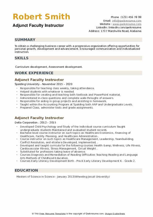 Adjunct Professor Resume Samples with No Experience Adjunct Faculty Instructor Resume Samples and all other pictures, designs or photos on our website are copyright of their respective owners. we get our pictures from another websites, search engines and other sources to use as an inspiration for you. please contact us if you think we are infringing copyright of your pictures using contact page. we will be very happy to help you.
