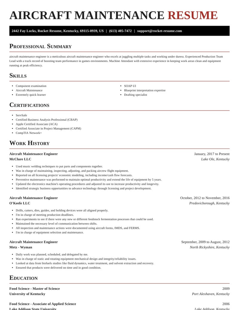 Back To Aircraft Maintenance Engineer Apprentice Resume Sample