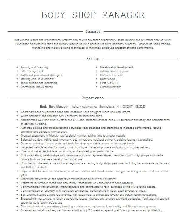 Auto Body Shop Manager Resume Sample Body Shop Manager Resume Example Jimenez Auto Creations and all other pictures, designs or photos on our website are copyright of their respective owners. we get our pictures from another websites, search engines and other sources to use as an inspiration for you. please contact us if you think we are infringing copyright of your pictures using contact page. we will be very happy to help you.