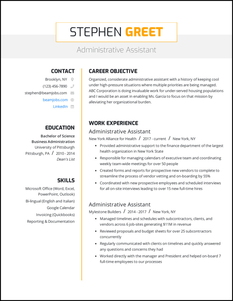 Best Resume Sample for Admin assistant Best 10 Resume Samples for Administrative assistant and all other pictures, designs or photos on our website are copyright of their respective owners. we get our pictures from another websites, search engines and other sources to use as an inspiration for you. please contact us if you think we are infringing copyright of your pictures using contact page. we will be very happy to help you.