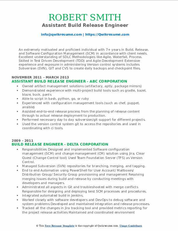 Build and Release Engineer Sample Resume Build Release Engineer Resume Samples and all other pictures, designs or photos on our website are copyright of their respective owners. we get our pictures from another websites, search engines and other sources to use as an inspiration for you. please contact us if you think we are infringing copyright of your pictures using contact page. we will be very happy to help you.