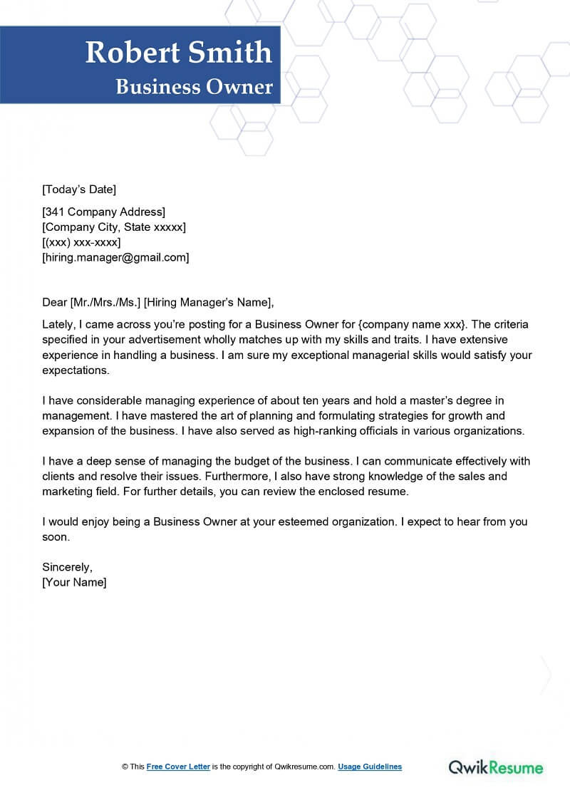 Business Administration Sample Cover Resume Letter Business Owner Cover Letter Examples – Qwikresume and all other pictures, designs or photos on our website are copyright of their respective owners. we get our pictures from another websites, search engines and other sources to use as an inspiration for you. please contact us if you think we are infringing copyright of your pictures using contact page. we will be very happy to help you.