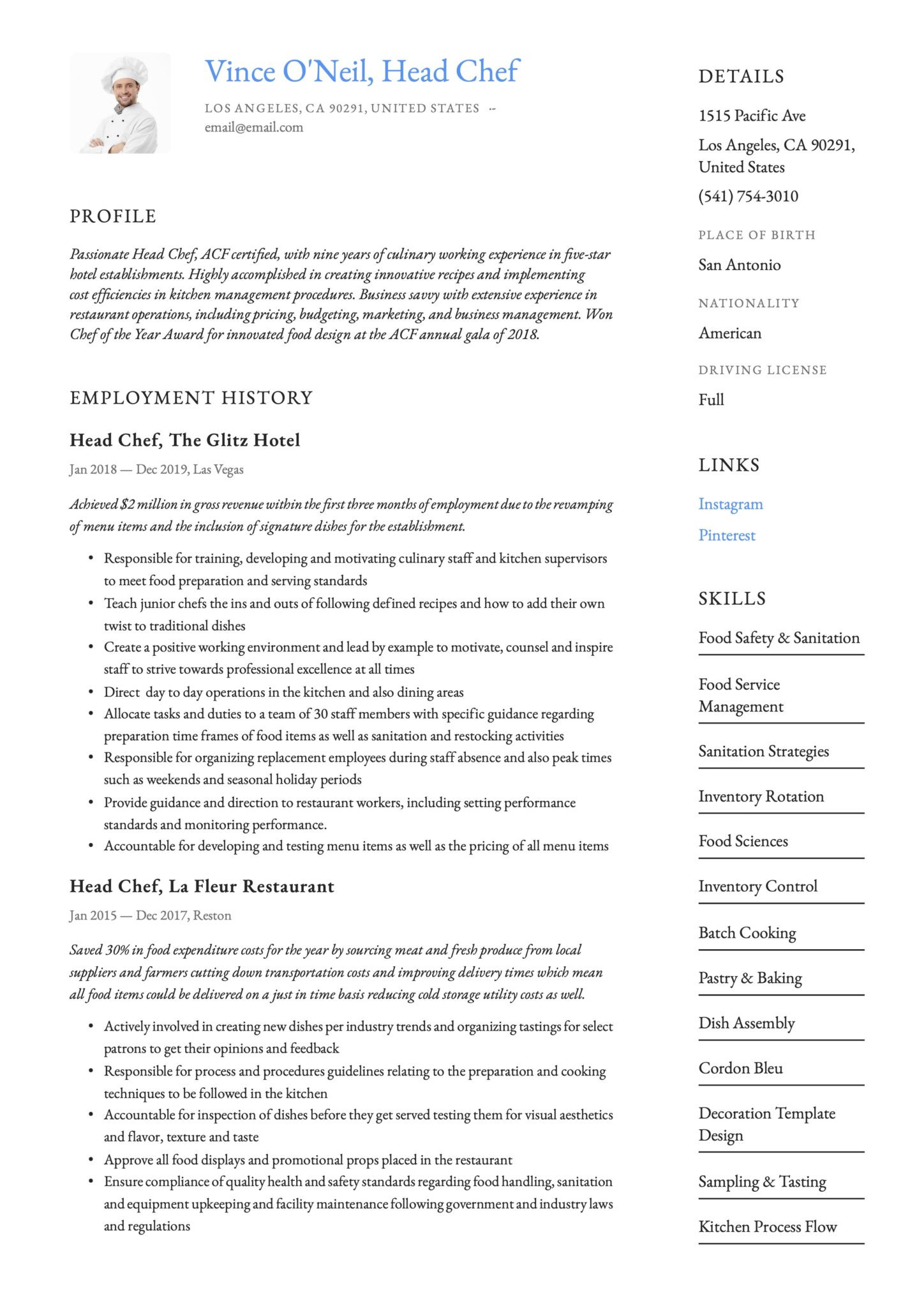 Chef Resume Sample by Resume Genius Sample Chef Resume and all other pictures, designs or photos on our website are copyright of their respective owners. we get our pictures from another websites, search engines and other sources to use as an inspiration for you. please contact us if you think we are infringing copyright of your pictures using contact page. we will be very happy to help you.