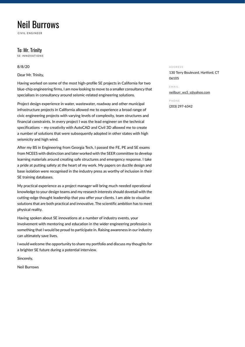 Warning: count(): Parameter must be an array or an object that implements Countable in /var/www/html/sangroupeducation.com/wp-content/themes/silegan-wordpress-theme/inc/themeson.class.php on line 625 Civil Engineering Resume Cover Letter Samples Civil Engineer Cover Letter Examples & Expert Tips [free] · Resume.io