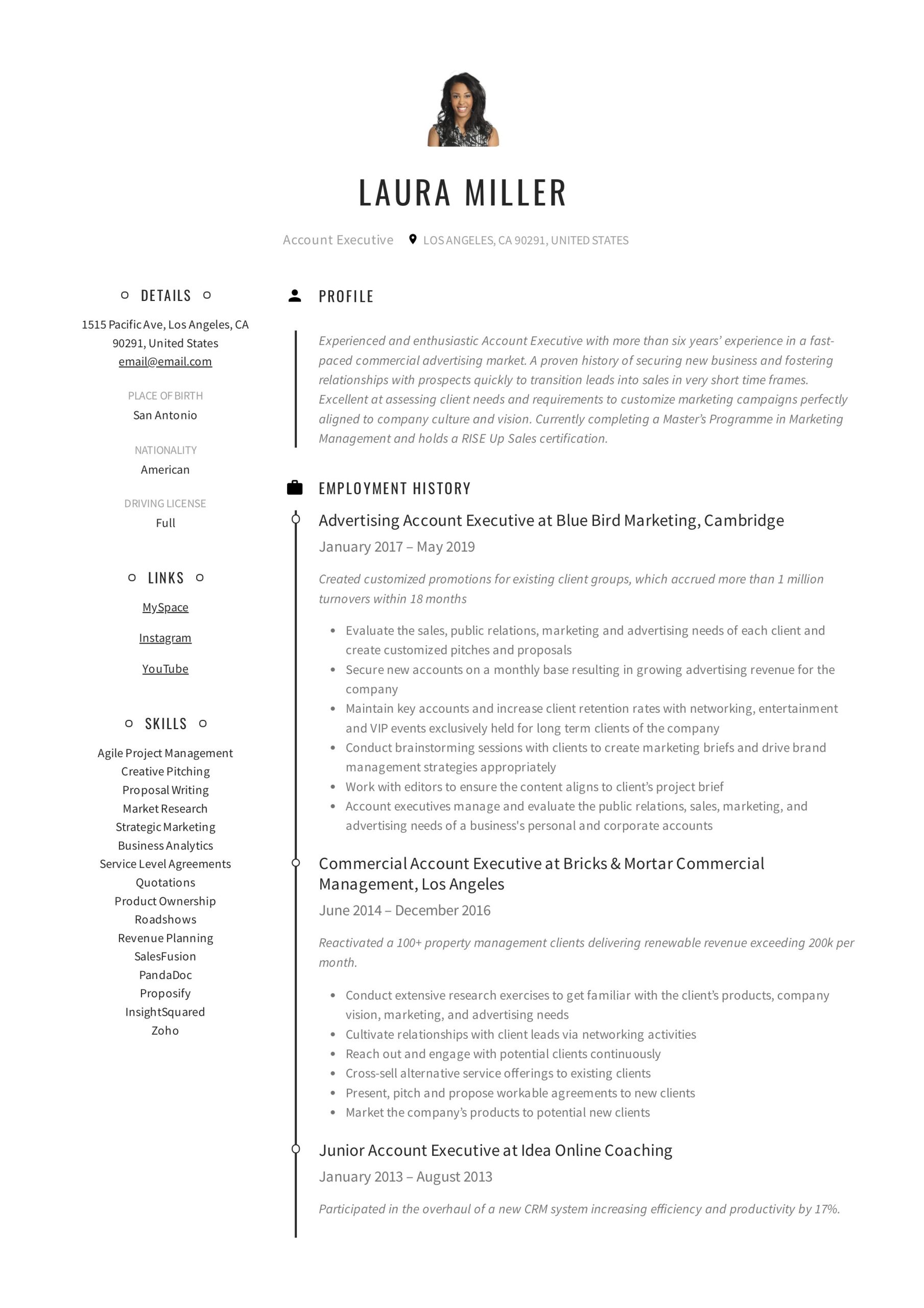Client Development Account Executive Resume Samples Account Executive Resume & Guide 18 Templates 2022 and all other pictures, designs or photos on our website are copyright of their respective owners. we get our pictures from another websites, search engines and other sources to use as an inspiration for you. please contact us if you think we are infringing copyright of your pictures using contact page. we will be very happy to help you.
