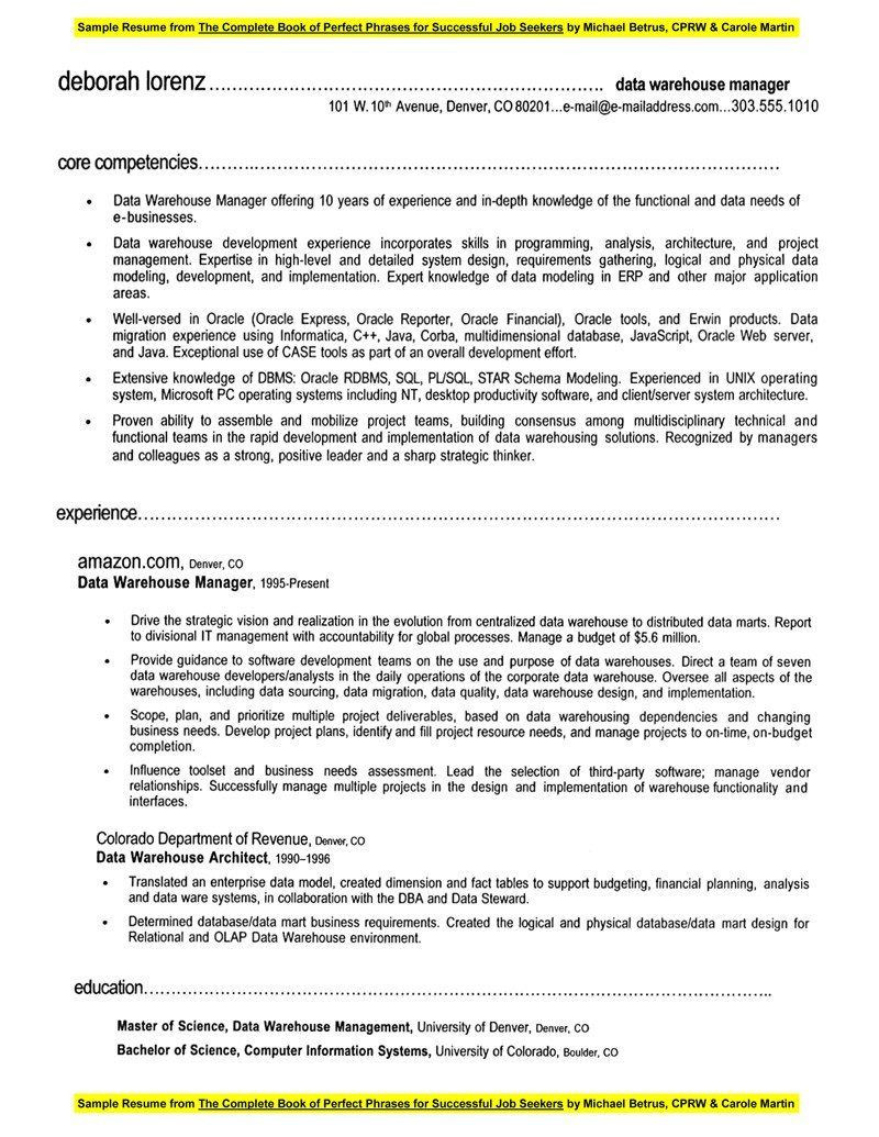 Back To Data Warehouse Project Manager Resume Sample