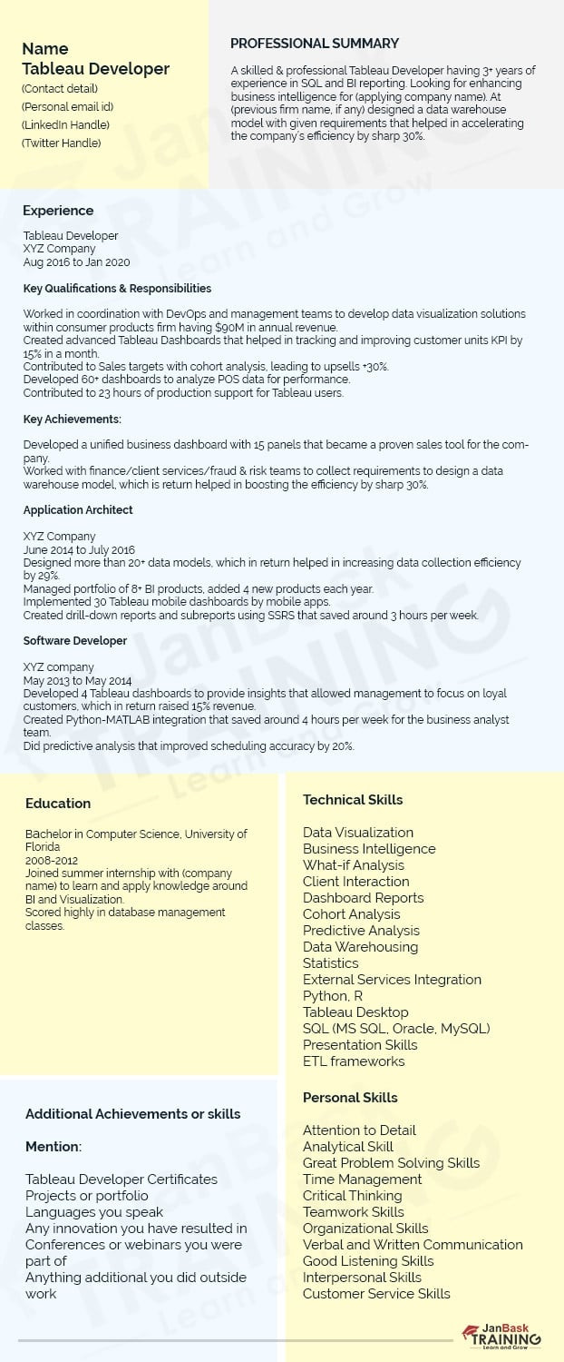 Data Warehousing Automation Bi Developer Sample Resume Tableau Developer Resume Sample – Download & Guide to Write One and all other pictures, designs or photos on our website are copyright of their respective owners. we get our pictures from another websites, search engines and other sources to use as an inspiration for you. please contact us if you think we are infringing copyright of your pictures using contact page. we will be very happy to help you.