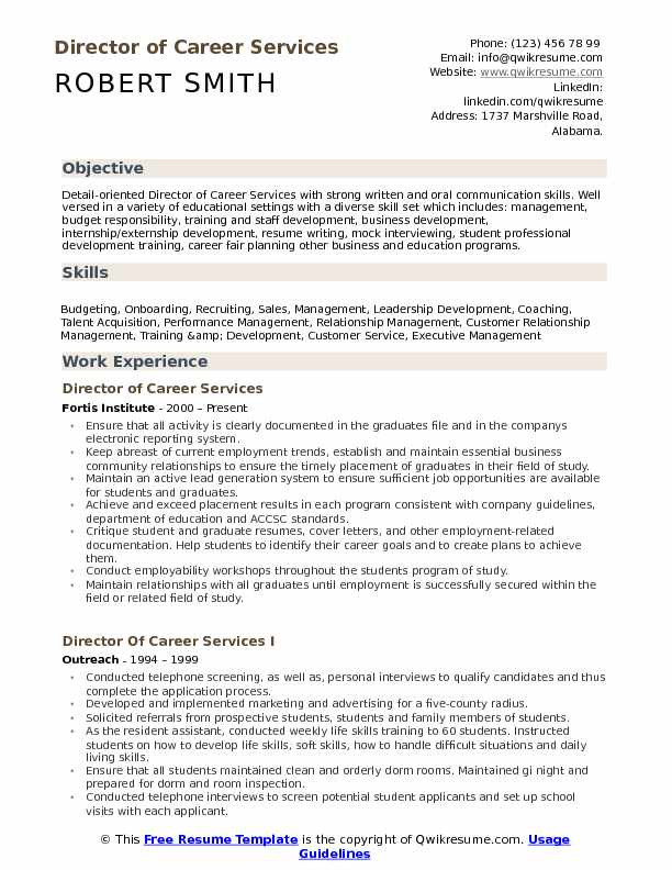 Director Of Career Services Resume Sample Director Of Career Services Resume Samples and all other pictures, designs or photos on our website are copyright of their respective owners. we get our pictures from another websites, search engines and other sources to use as an inspiration for you. please contact us if you think we are infringing copyright of your pictures using contact page. we will be very happy to help you.