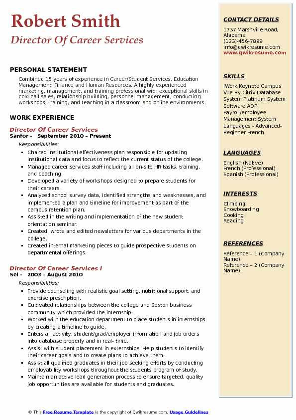 Director Of Career Services Resume Sample Director Of Career Services Resume Samples and all other pictures, designs or photos on our website are copyright of their respective owners. we get our pictures from another websites, search engines and other sources to use as an inspiration for you. please contact us if you think we are infringing copyright of your pictures using contact page. we will be very happy to help you.