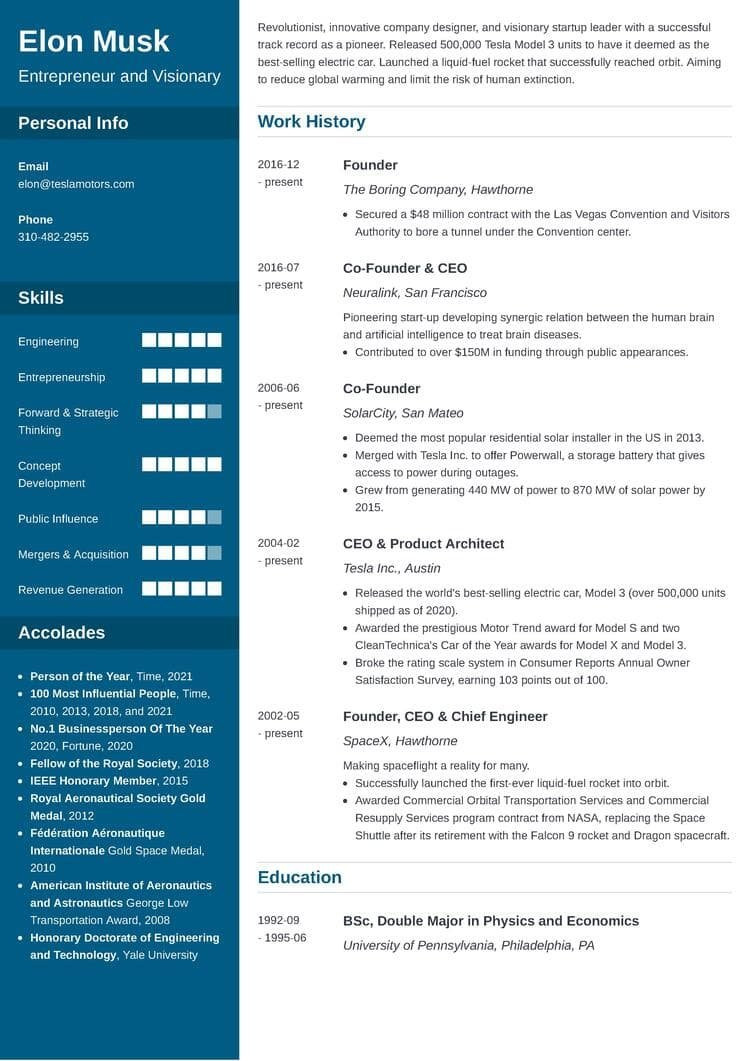 Warning: count(): Parameter must be an array or an object that implements Countable in /var/www/html/sangroupeducation.com/wp-content/themes/silegan-wordpress-theme/inc/themeson.class.php on line 625 Elon Musk One Page Resume Sample Elon Musk One-page Resume: Real Example & Template