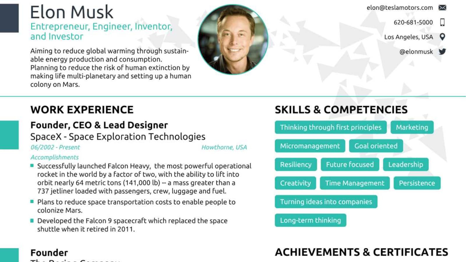 Elon Musk One Page Resume Sample Can Anyone Fit Elon Musk’s Resume In A Single Page? A Job … is related to Resume Samples. if you looking for Elon Musk One Page Resume Sample Can Anyone Fit Elon Musk’s Resume In A Single Page? A Job … and you feel this is useful, you must share this image to your friends. we also hope this image of Elon Musk One Page Resume Sample Can Anyone Fit Elon Musk’s Resume In A Single Page? A Job … can be useful for you. we will always give new source of image for you