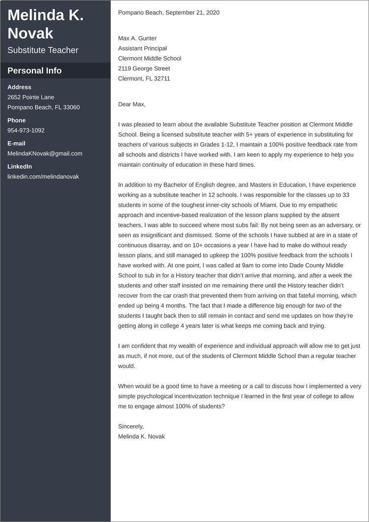 Entry Level Sample Substitute Teacher Resume Substitute Teacher Cover Letter Examples & Templates (2022) and all other pictures, designs or photos on our website are copyright of their respective owners. we get our pictures from another websites, search engines and other sources to use as an inspiration for you. please contact us if you think we are infringing copyright of your pictures using contact page. we will be very happy to help you.