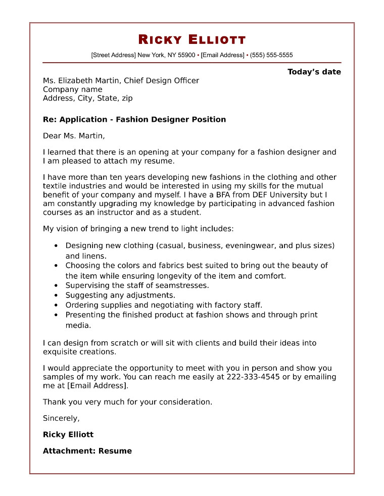 6 photos of the Fashion Designer Resume Cover Letter Sample