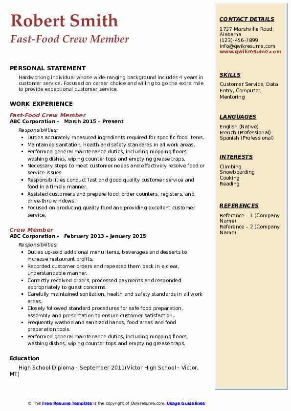 Warning: count(): Parameter must be an array or an object that implements Countable in /var/www/html/sangroupeducation.com/wp-content/themes/silegan-wordpress-theme/inc/themeson.class.php on line 625 Fast Food Crew Member Resume Sample Crew Member Resume Samples