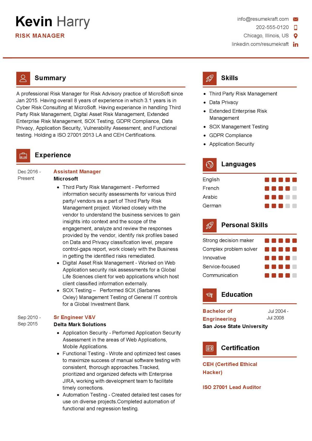 6 photos of the Financial asset Risk Management Sample Resume for Free