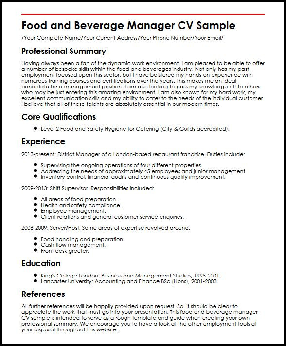 Food and Beverage Manager Resume Sample Food and Beverage Manager Cv Sample Myperfectcv and all other pictures, designs or photos on our website are copyright of their respective owners. we get our pictures from another websites, search engines and other sources to use as an inspiration for you. please contact us if you think we are infringing copyright of your pictures using contact page. we will be very happy to help you.