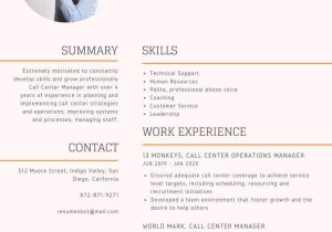 Free Sample Resume for Call Center Manager Call Center Resume Sample Monster.com and all other pictures, designs or photos on our website are copyright of their respective owners. we get our pictures from another websites, search engines and other sources to use as an inspiration for you. please contact us if you think we are infringing copyright of your pictures using contact page. we will be very happy to help you.