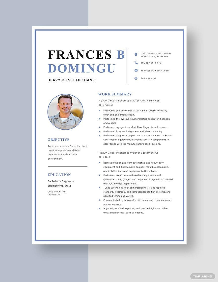 Free Sample Resume for Diesel Mechanic Free Free Heavy Diesel Mechanic Resume Template – Word, Apple …