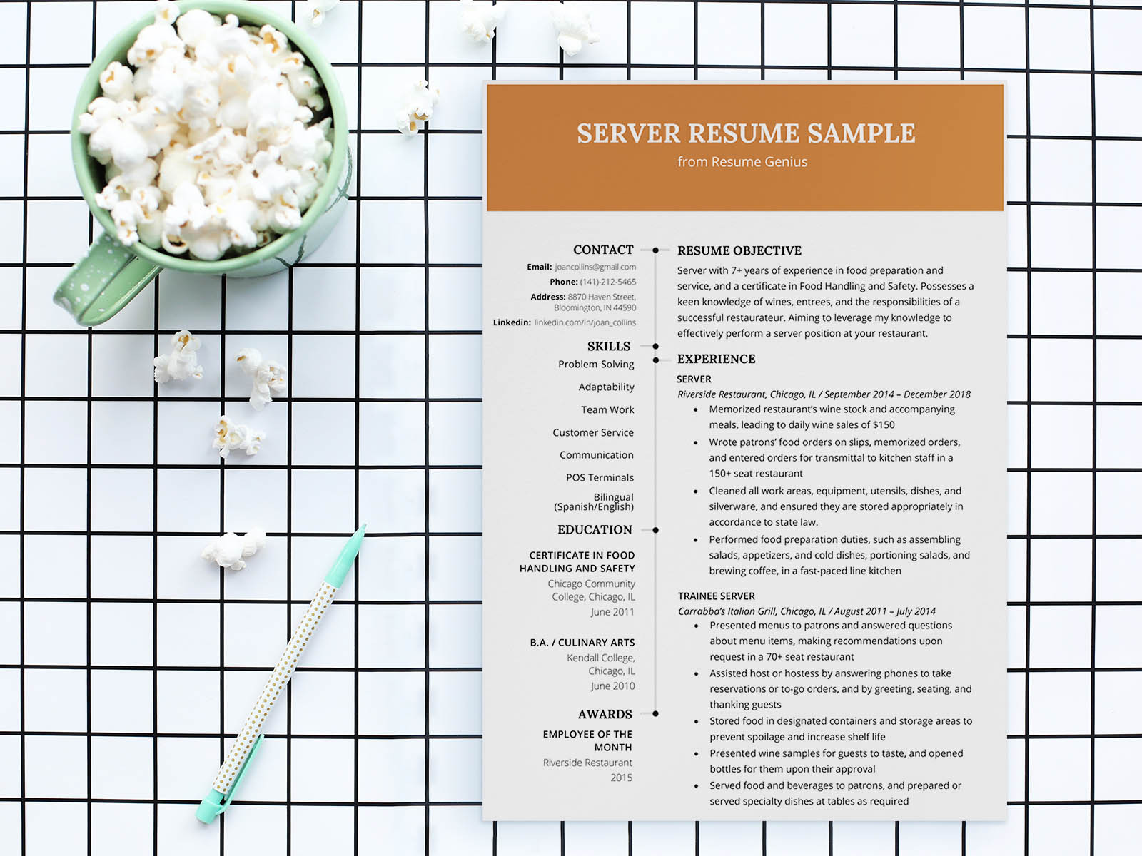 Free Sample Resume for Food Server Free Server Restaurant Resume Template with Sample Text and all other pictures, designs or photos on our website are copyright of their respective owners. we get our pictures from another websites, search engines and other sources to use as an inspiration for you. please contact us if you think we are infringing copyright of your pictures using contact page. we will be very happy to help you.