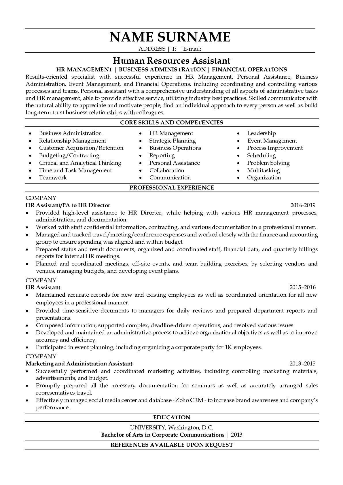Free Sample Resume for Human Resources assistant Professional Human Resources assistant Resume Sample Resumegets.com and all other pictures, designs or photos on our website are copyright of their respective owners. we get our pictures from another websites, search engines and other sources to use as an inspiration for you. please contact us if you think we are infringing copyright of your pictures using contact page. we will be very happy to help you.