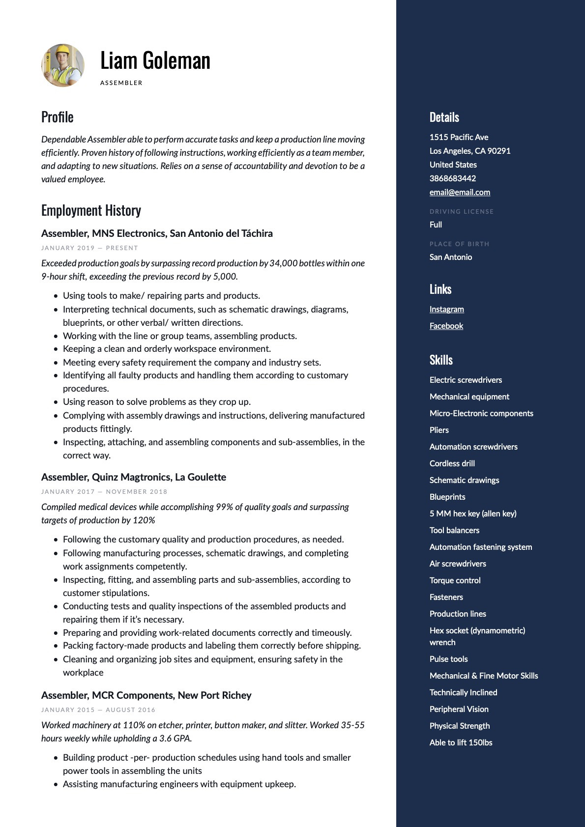 Furniture assembly Service for Resume Sample assembler Resume & Guide 17 Templates Word 2022 and all other pictures, designs or photos on our website are copyright of their respective owners. we get our pictures from another websites, search engines and other sources to use as an inspiration for you. please contact us if you think we are infringing copyright of your pictures using contact page. we will be very happy to help you.