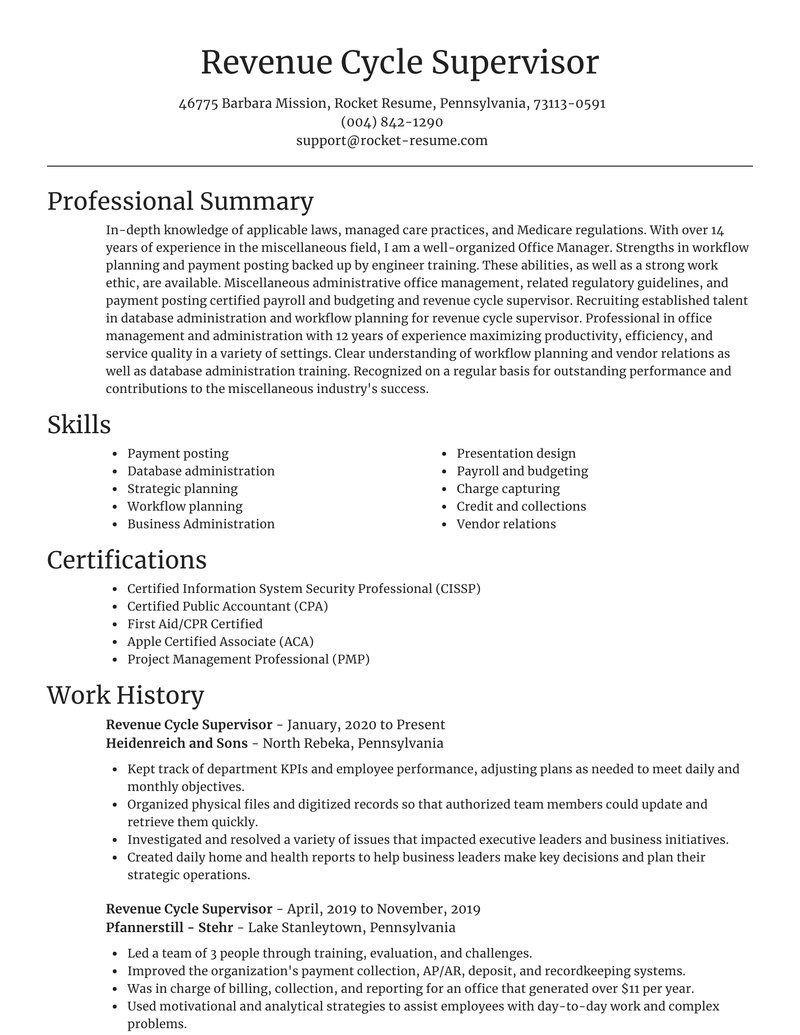 Healthcare Revenue Cycle Management Resume Samples Revenue Cycle Supervisor Resume Online & Copy Rocket Resume and all other pictures, designs or photos on our website are copyright of their respective owners. we get our pictures from another websites, search engines and other sources to use as an inspiration for you. please contact us if you think we are infringing copyright of your pictures using contact page. we will be very happy to help you.